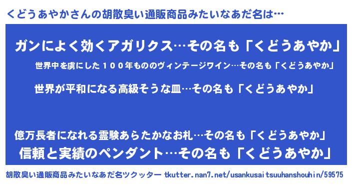 | 欧米人風あだ名 | 『くどうあやかクリステル』 |