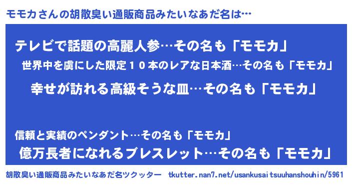 | 意味不明あだ名 | 『モモカフォーエバー』『自称モモカ』 |