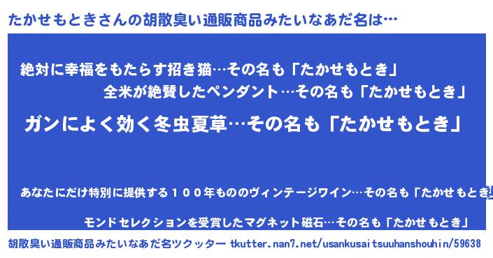 | ヘコむあだ名 | 『たかせもとき(遠い目)』『たかお』 |