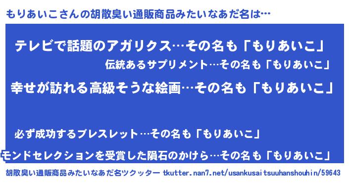 | 意味不明あだ名 | 『もりあいこフォーエバー』 |