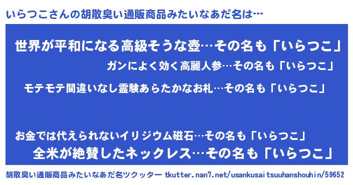 | 意味不明あだ名 | 『ペロリンいらつこ』『自称いらつこ』 |