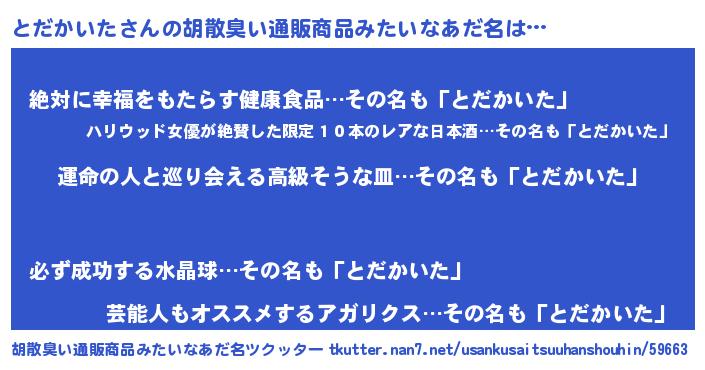 | 意味不明あだ名 | 『とだかいたフォーエバー』 |