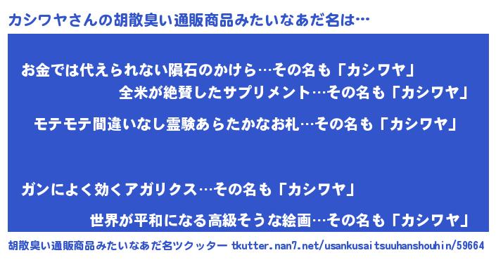 | ヘコむあだ名 | 『カシもー』『豆乳』『カシを』 |