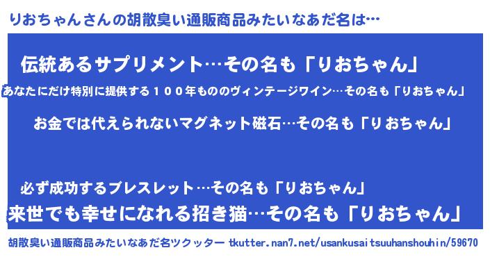 | ヘコむあだ名 | 『りおを』『りおちゃん(小並感)』 |