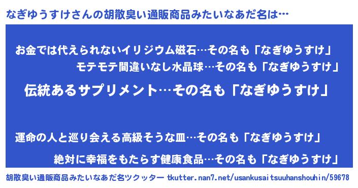 | ヘコむあだ名 | 『なぎお』『なぎゆうすけ(爆)』 |