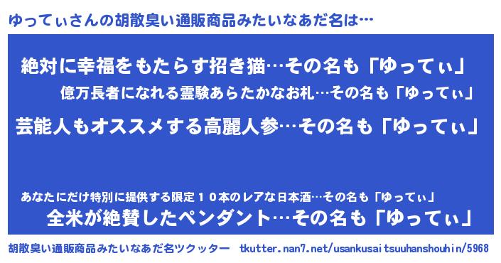| 意味不明あだ名 | 『自称ゆってぃ』『永久保存ゆってぃ』 |