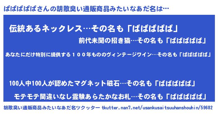 | 意味不明あだ名 | 『住所不定無職ばばばばば(7歳)』 |