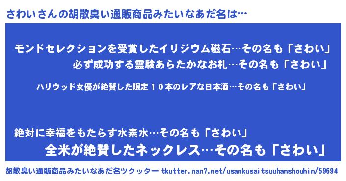 | ヒーロー風カッコイイあだ名 | 『仮面サワダー』『天空の使者さわい』 |