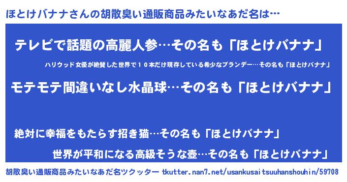| 男性向けラノベタイトル風あだ名 | 『転生したらほとけバナナだった件』 |