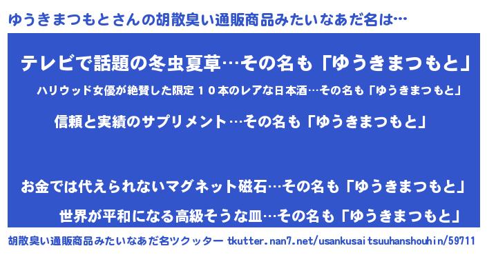 | 意味不明あだ名 | 『とにかく怪しいゆうきまつもと』 |
