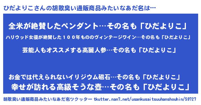 | 意味不明あだ名 | 『自称ひだよりこ』 |