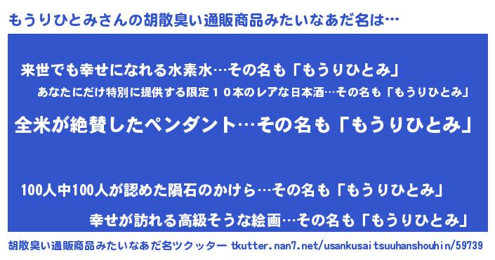 | 意味不明あだ名 | 『とにかく怪しいもうりひとみ』 |