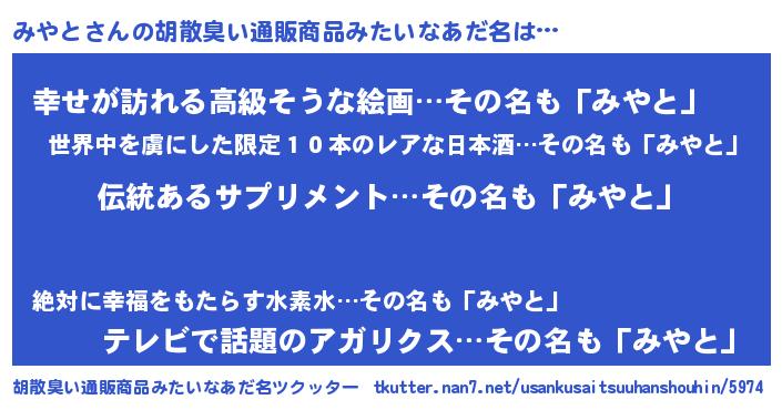 | 欧米人風あだ名 | 『みやと・ステッグマイヤー』 |
