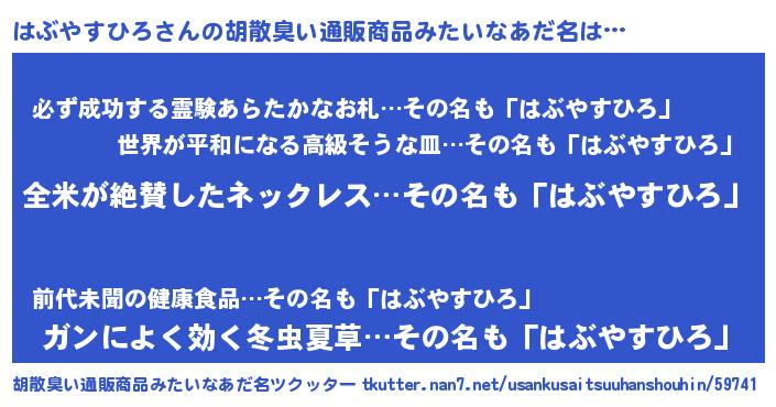 | 意味不明あだ名 | 『とにかく怪しいはぶやすひろ』 |