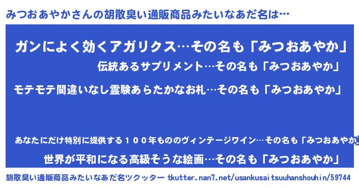 | 肩書あだ名 | 『みつおあやか社長令嬢』 |