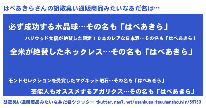 | 伝説のあだ名 | 『覚醒した僧侶はべあきら』 |