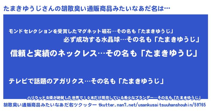 | 意味不明あだ名 | 『とにかく怪しいたまきゆうじ』 |