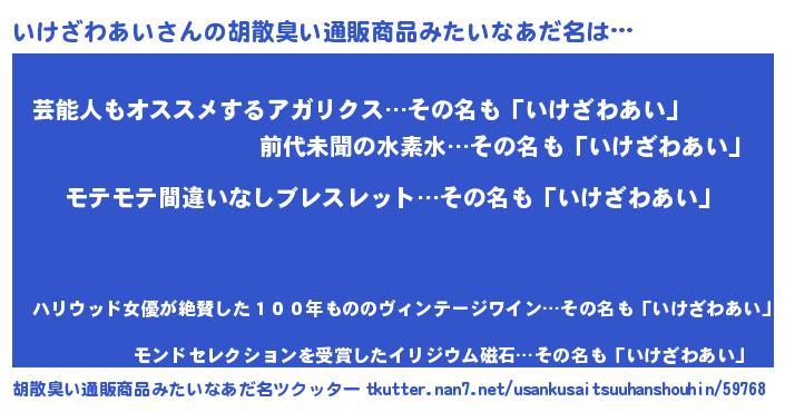 | ヘコむあだ名 | 『いけにー』『いけざわあい(小並感)』 |