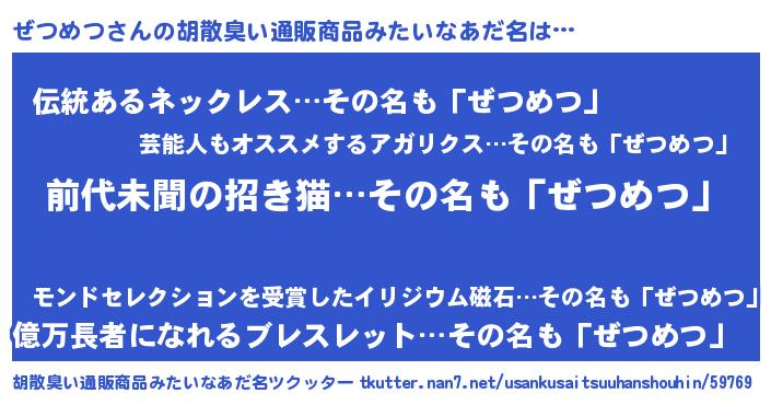 | ヘコむあだ名 | 『ぜつめつ(小並感)』『ぜつっ子』 |
