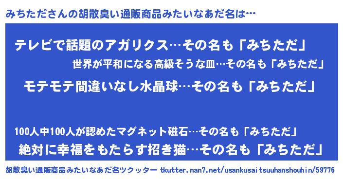 | 男性向けラノベタイトル風あだ名 | 『みちただの憂鬱』 |