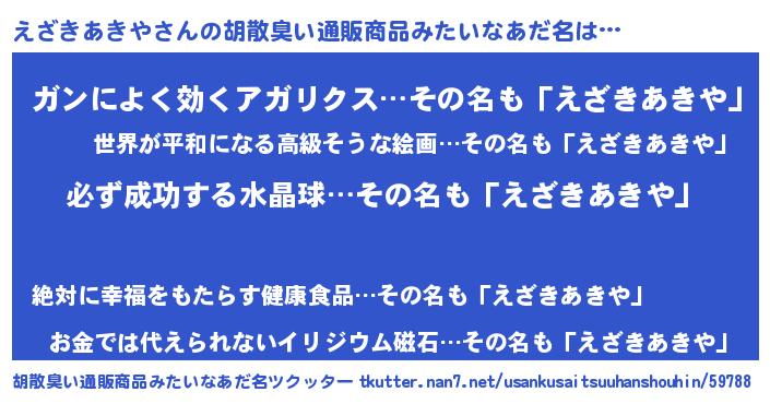 | 肩書あだ名 | 『えざきあきや店長』『えざきあきや総統』 |