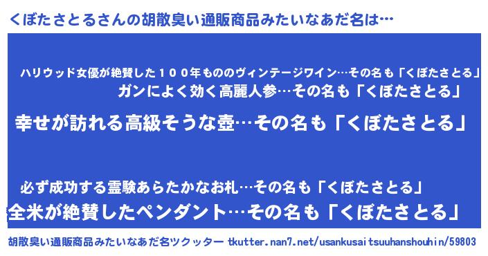 | 女子向けラノベタイトル風あだ名 | 『くぼたさとるの雑貨屋さん』 |