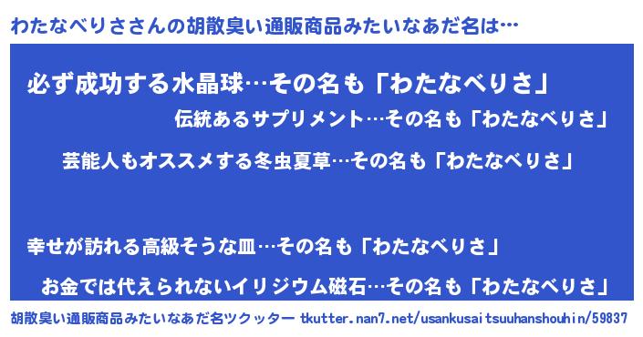 | 伝説のあだ名 | 『封印されしスナイパーわたなべりさ』 |