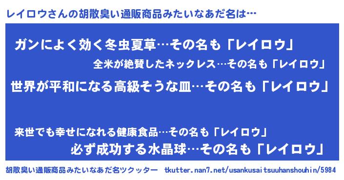 | ヘコむあだ名 | 『なまこ酢』『レイにゅー』 |