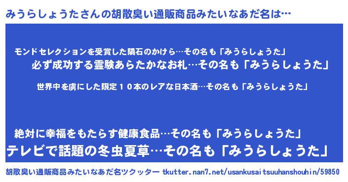| ヘコむあだ名 | 『みうにゅー』『みうらしょうた(苦笑)』 |