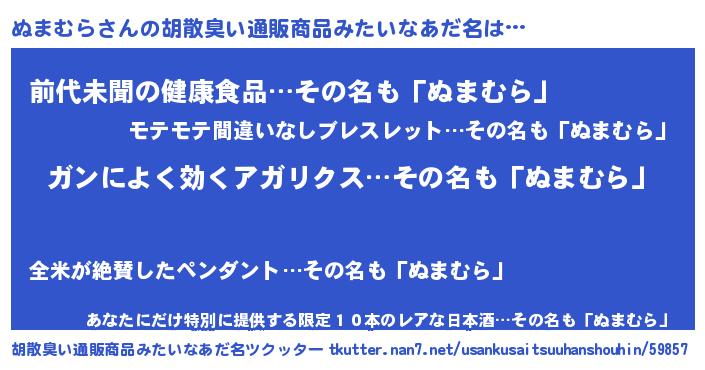 | 意味不明あだ名 | 『自称ぬまむら』『永久保存ぬまむら』 |