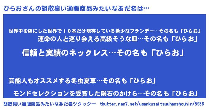 | 肩書あだ名 | 『ひらおディレクター』『ひらおリーダー』 |
