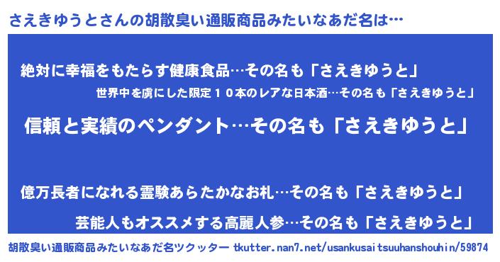 | 可愛いあだ名 | 『さっえぃー』『さえきゆうとママ』 |