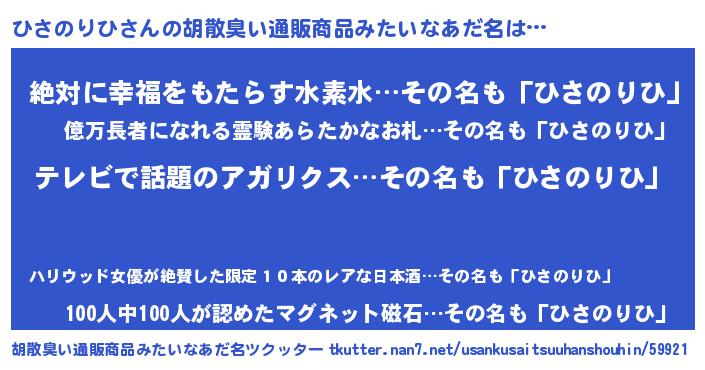 | 意味不明あだ名 | 『自称ひさのりひ』『永久保存ひさのりひ』 |