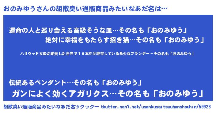 | 意味不明あだ名 | 『住所不定無職おのみゆう(74歳)』 |