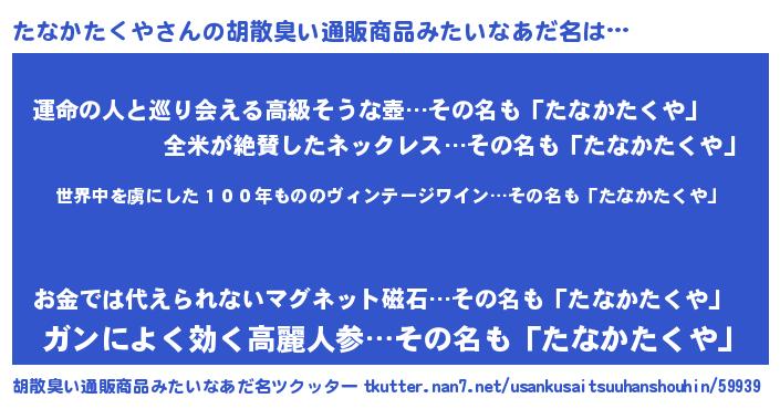 | 意味不明あだ名 | 『住所不定無職たなかたくや(13歳)』 |