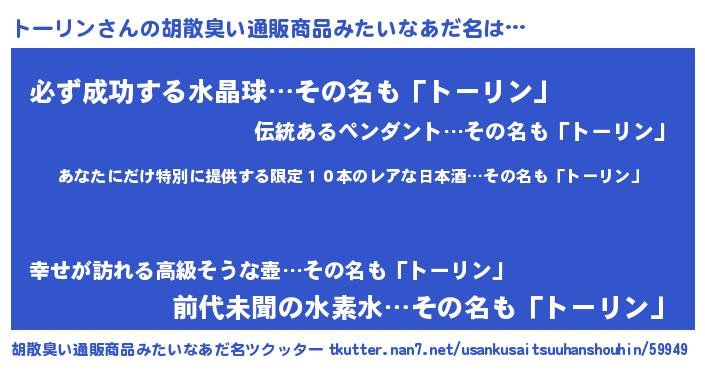 | ヘコむあだ名 | 『トーにゅー』『トーリン(笑)』 |