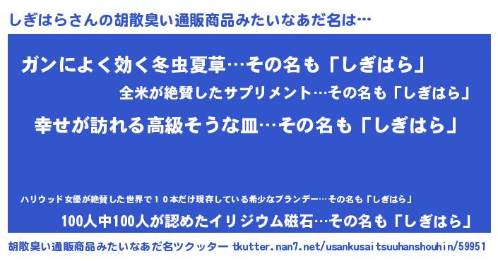 | 意味不明あだ名 | 『しぎはらフォーエバー』『自称しぎはら』 |