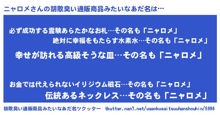 | 意味不明あだ名 | 『ニャロメフォーエバー』 |