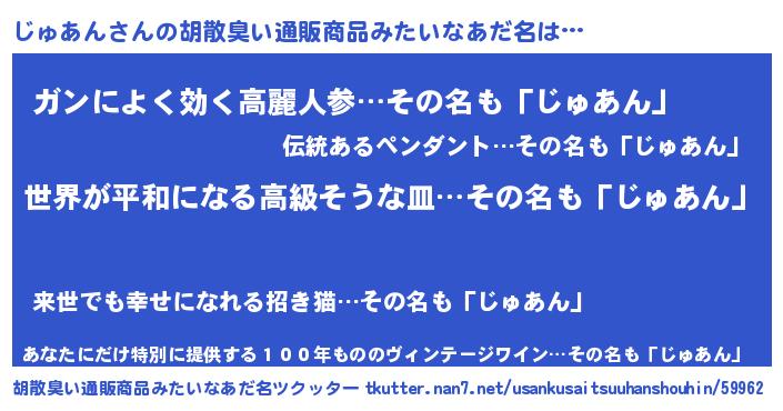 | 意味不明あだ名 | 『じゅあんフォーエバー』『自称じゅあん』 |