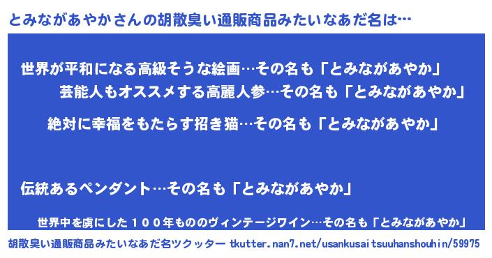 | 意味不明あだ名 | 『永久保存とみながあやか』 |