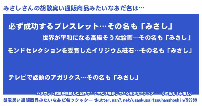 | 欧米人風あだ名 | 『アンジェラ・みさし』『ダニエルみさし』 |