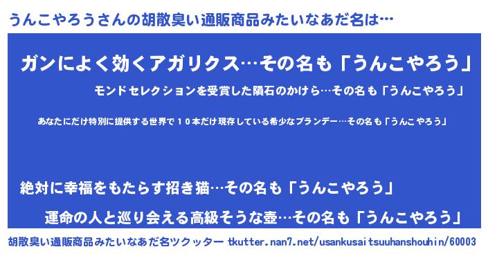 | 市区町村名 | 『うん田谷区』『京うん市』 |