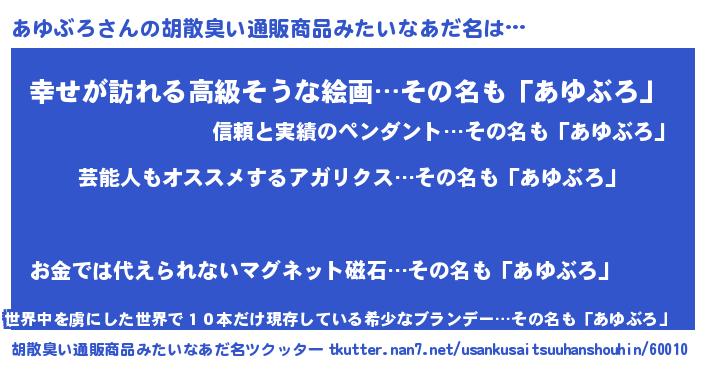| 意味不明あだ名 | 『自称あゆぶろ』『あゆぶろフォーエバー』 |
