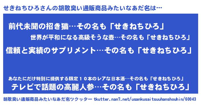 | ヘコむあだ名 | 『せきを』『せきねちひろ(小並感)』 |