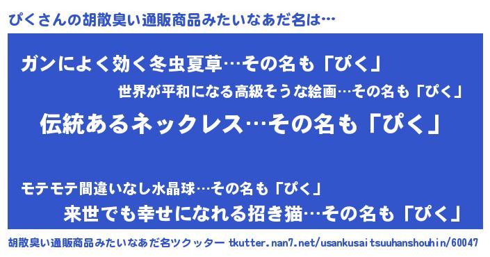 | 意味不明あだ名 | 『とにかく怪しいぴく』『自称ぴく』 |