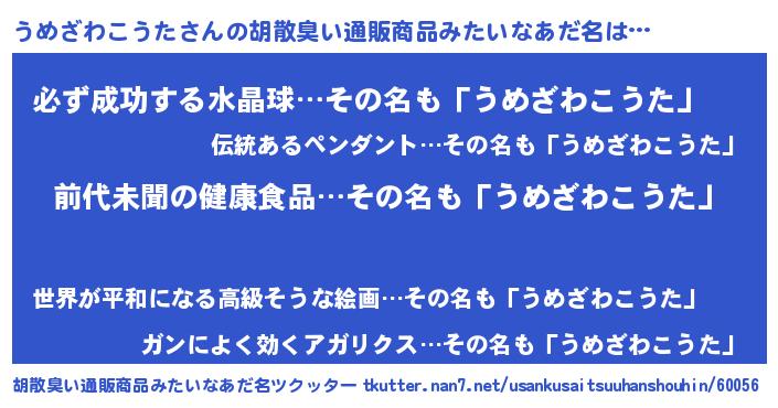 | ヘコむあだ名 | 『うめざわこうた(苦笑)』『うめもー』 |
