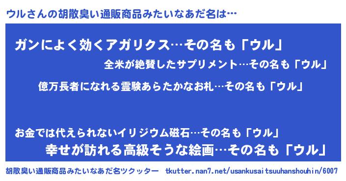 | 2回繰り返すあだ名 | 『ウルウル』『むざむざ』『ウウルル』 |