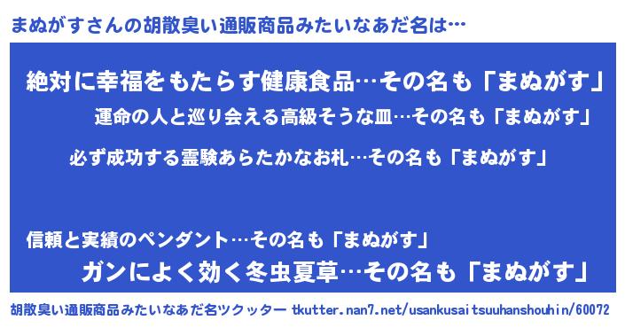 | ヘコむあだ名 | 『まぬもー』『まぬがす(遠い目)』 |