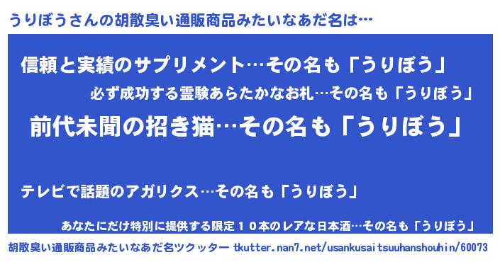 | ヘコむあだ名 | 『うりぼう(笑)』『うりお』『牛乳』 |