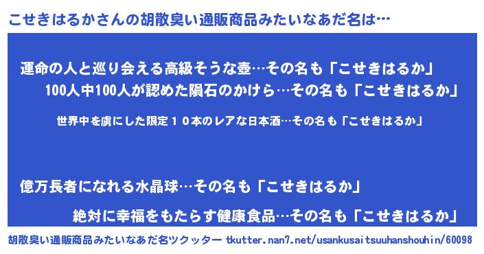 | 意味不明あだ名 | 『住所不定無職こせきはるか(50歳)』 |